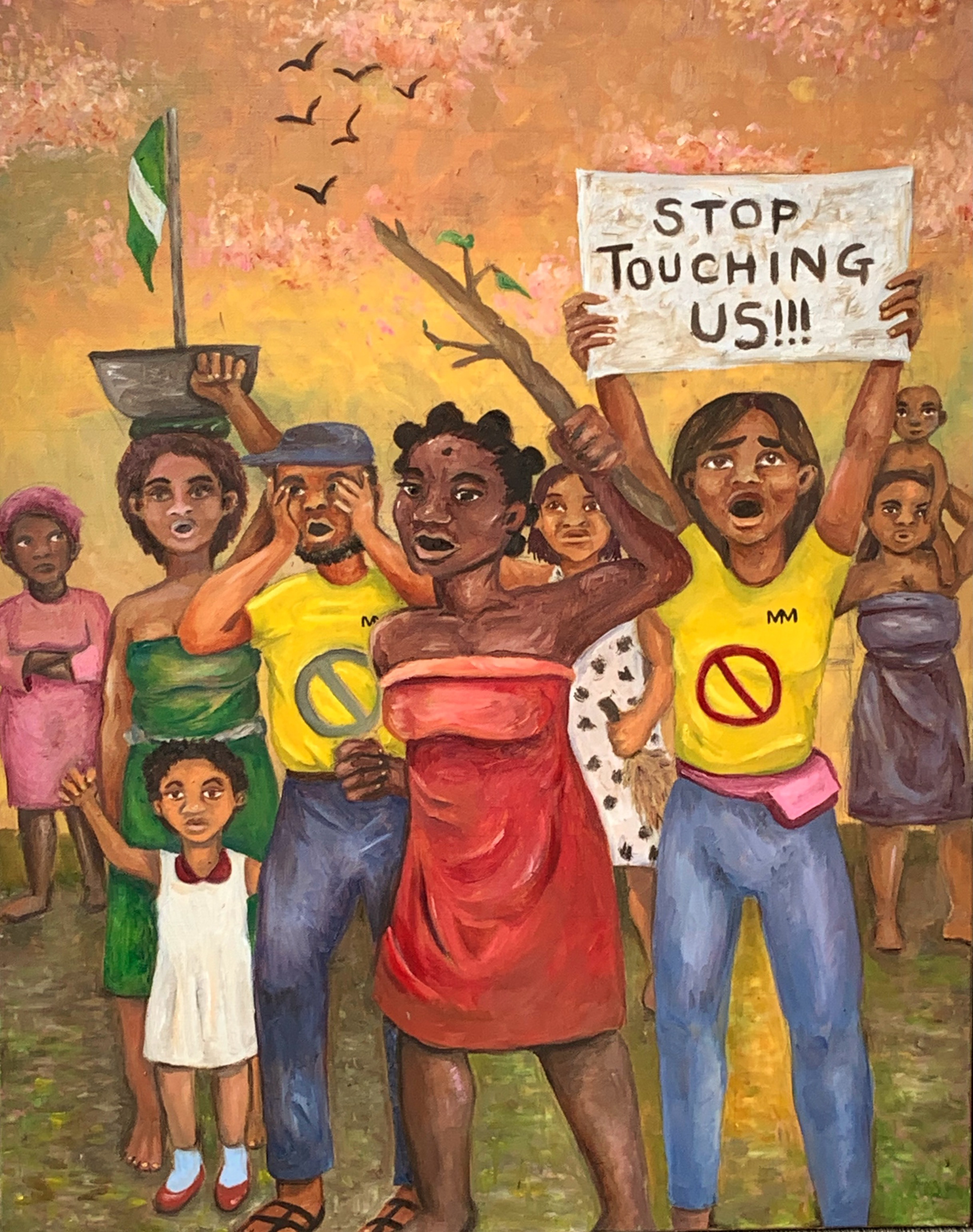 The heroines of these movements are acknowledged here: in red is Madam Ikonna Enyia, (Aba Riot Organizer) and beside her is Damilola Marcus (Market March Founder) two women who uphold decades of activism against a myriad of social issues, in a country that still considers women second class citizens.